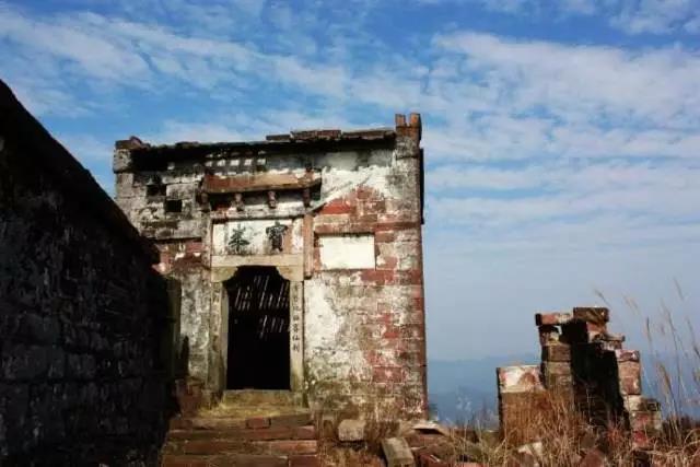 整个庙宇悬立在绝壁之上,倚在残垣断壁中