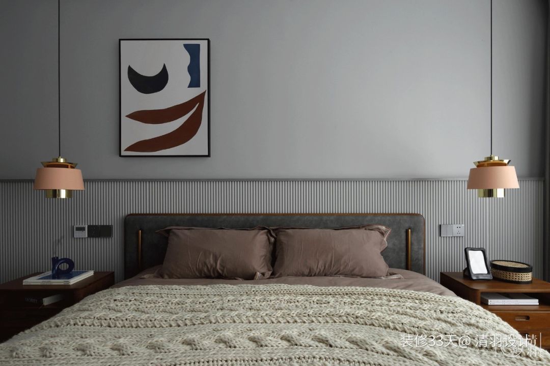 ▲ 主卧延续了灰色调,结合深色的布艺窗帘,既能起到良好的遮光作用增加睡眠质量,还能让房间显得统一雅致