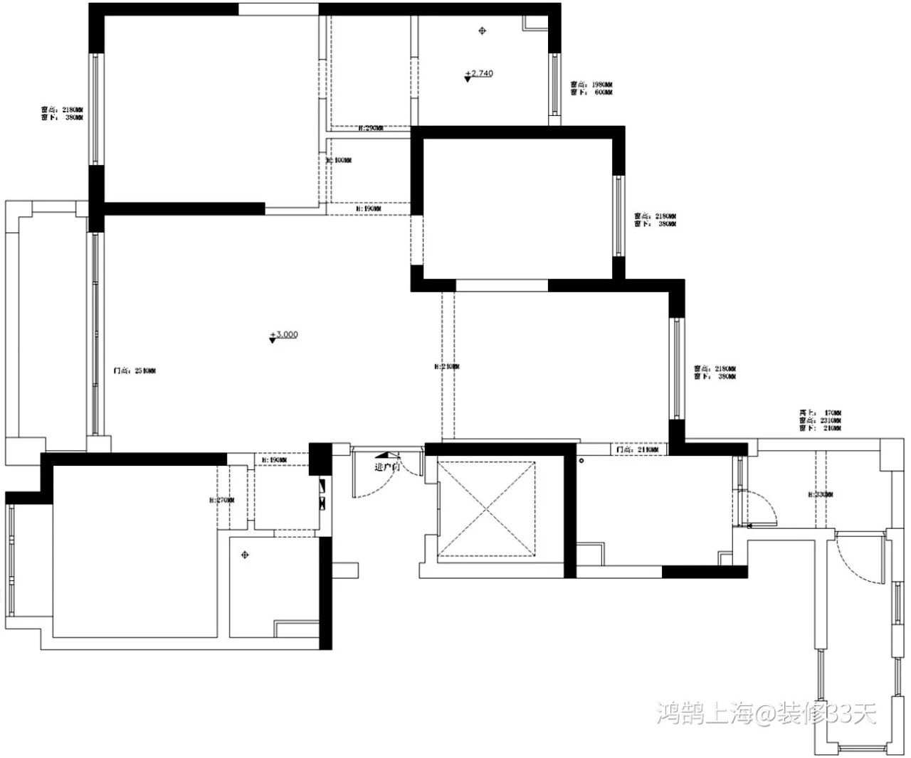 ▲ 餐厅,餐边柜兼进门鞋柜功能,柜门高度2.25m,底部留有35cm尺寸鞋台高度,加入灯带