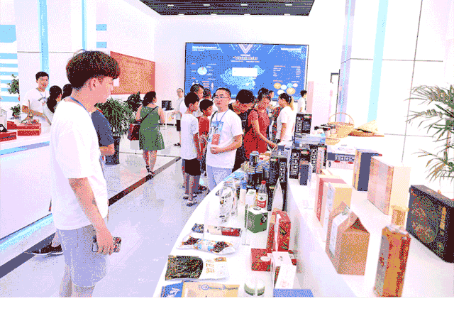 ▲电商公共服务中心一楼展厅,参观人员络绎不绝!!!