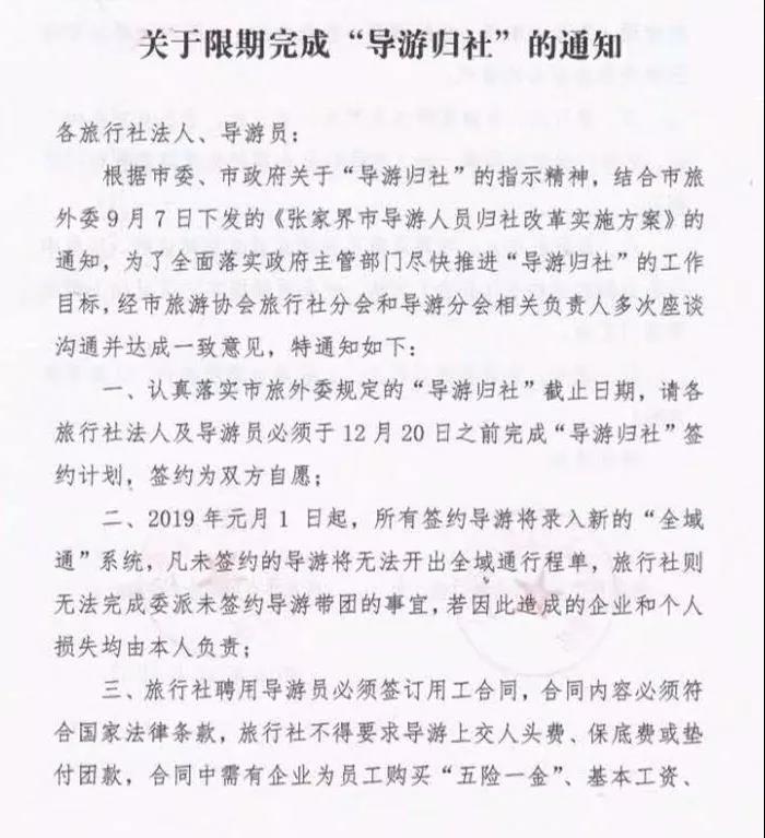 兼职导游、未执业导游人员须加入旅游行业组织并接受管理。若接受旅行社长期聘用,须办理相关归社手续,录入张家界“全域通”旅游平台信息系统数据库。