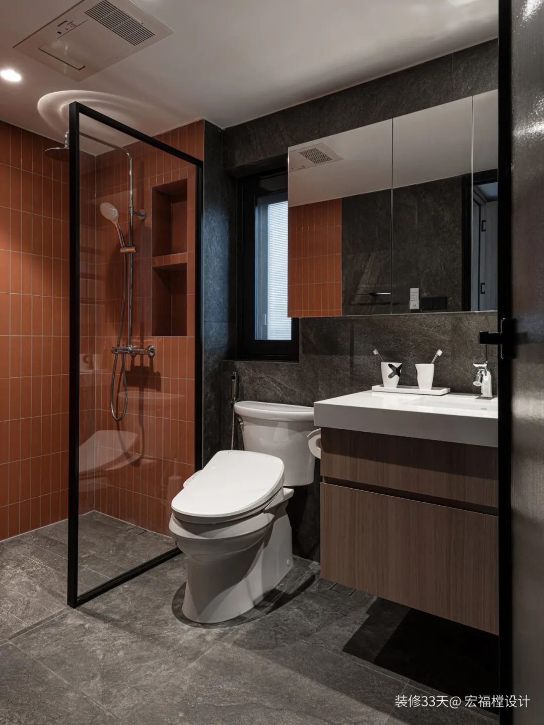▲ 客卫将干区外置,提高生活效率,立柱洗手盆+探戈橘定制浴室柜+圆球吊灯,也是一种不错的装饰