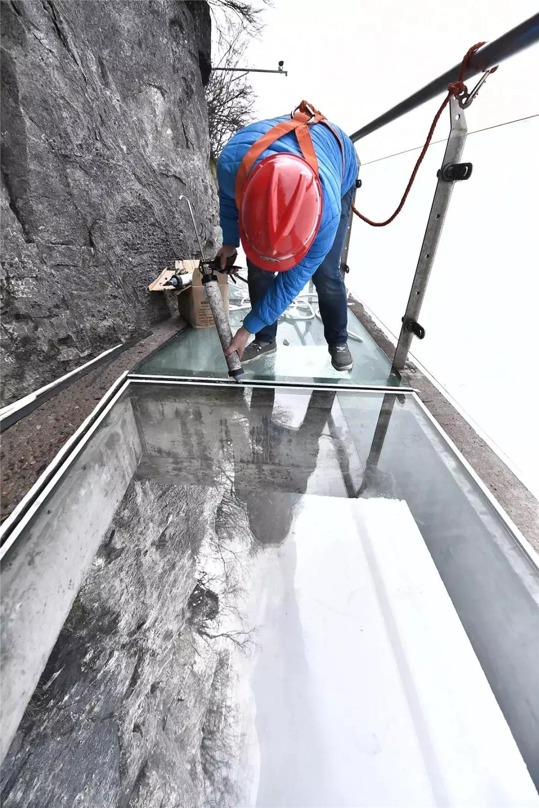 在玻璃栈道更换玻璃有多惊险
