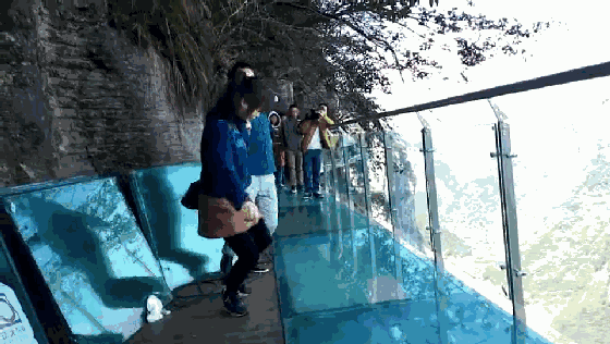 走在玻璃栈道上