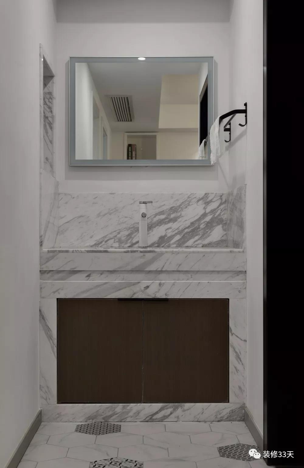 ▲ 储物卡座连接石纹吧台,上方两组置物层板,既作装饰又具实用性