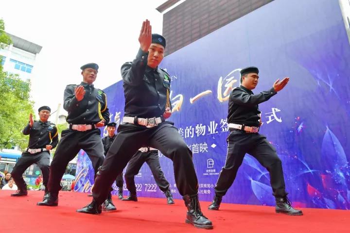 随后美的物业的安保和客服表演了擒敌术和礼仪操