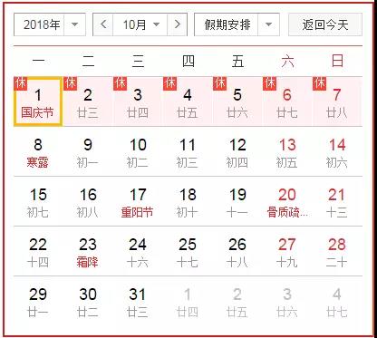 根据今年放假安排,国庆黄金周为10月1日—7日放假,9月29日—30日(星期六、日)上班;中秋节为9月22日—24日放假,其中,9月22日—23日为周末,9月24日(星期一)补休。