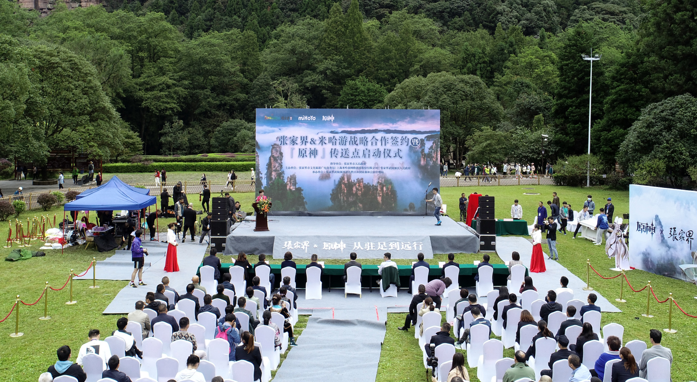 9月23日上午,张家界与米哈游战略合作签约仪式暨《原神》传送点启动仪式在张家界国家森林公园大氧吧广场举行。(向韬 拍摄)