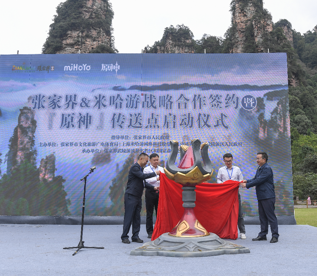 9月23日上午,张家界与米哈游战略合作签约仪式暨《原神》传送点启动仪式在张家界国家森林公园大氧吧广场举行,双方战略合作正式拉开序幕。 市委常委、市委宣传部部长郭天保,市人大常委会副主任、武陵源区委书记朱用文,上海米哈游网络科技股份有限公司战略投资副总裁吴頔出席此次活动。