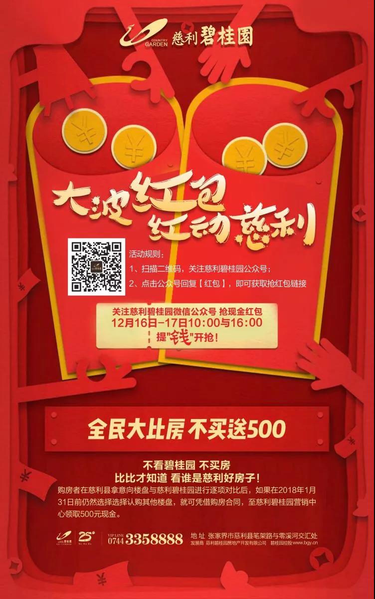 活动规则:扫描文章底部二维码,关注慈利碧桂园公众号;点击公众号回复【红包】,即可获取红包链接