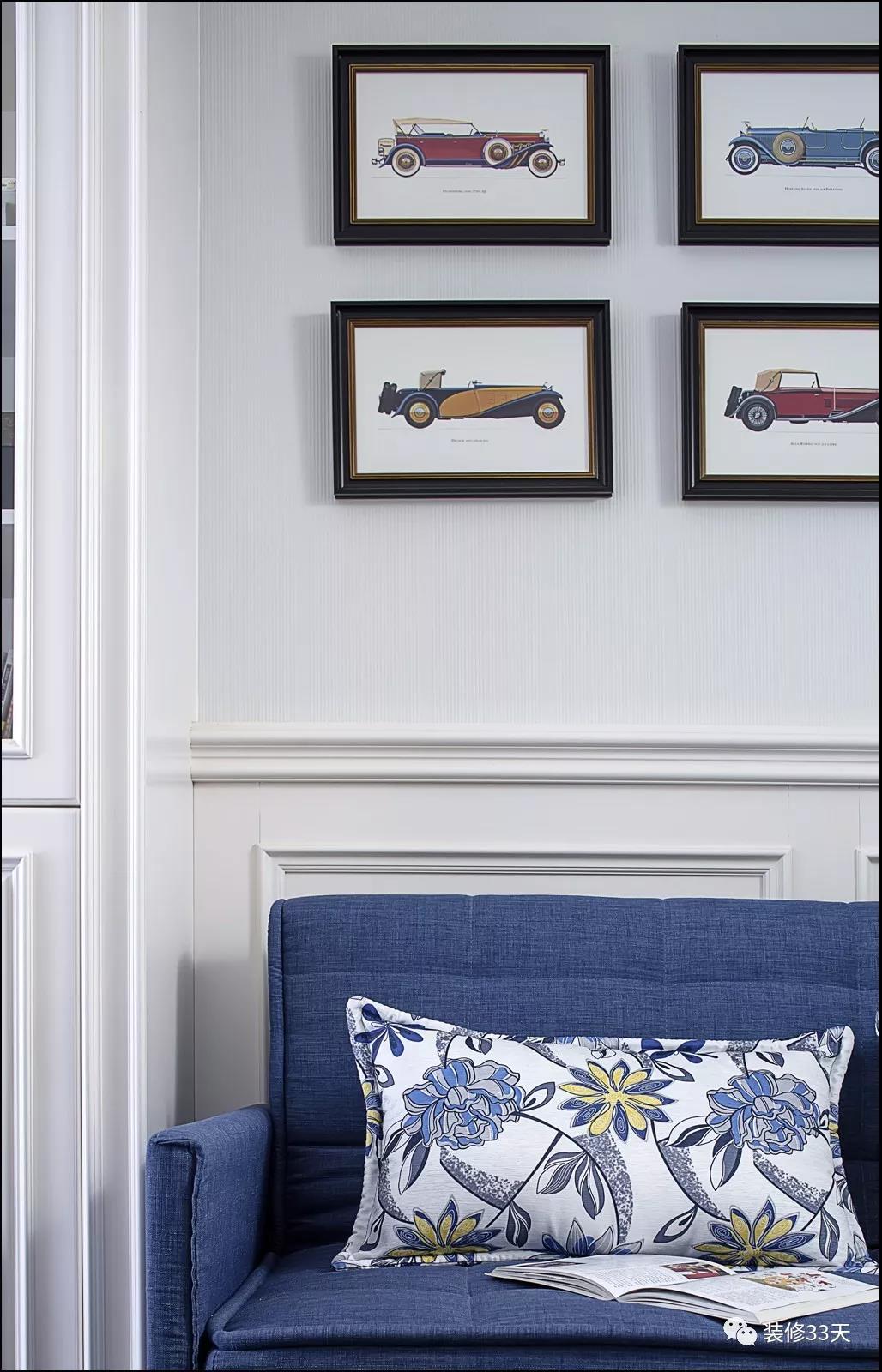 ▲ 书房放置一张蓝色布艺沙发,在休闲之余也可小憩