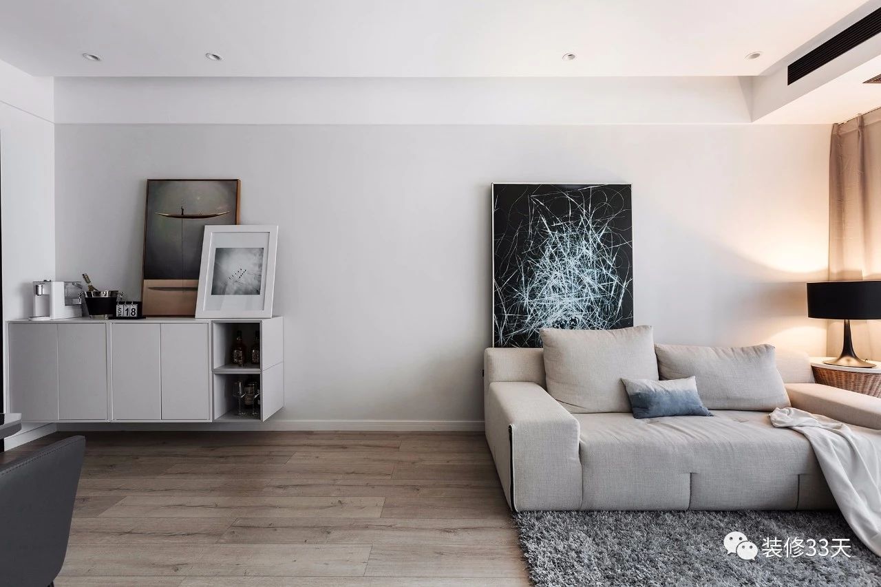 ▲ 次卧,以灰白为主调,选用的组合壁画也在色调上保持一致,打造冷静空间氛围